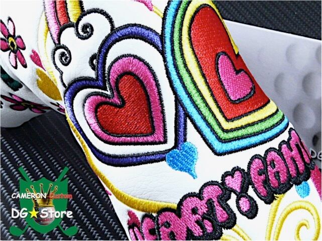中央のハートのインパクトに主張し、キャディバッグを彩りますね。